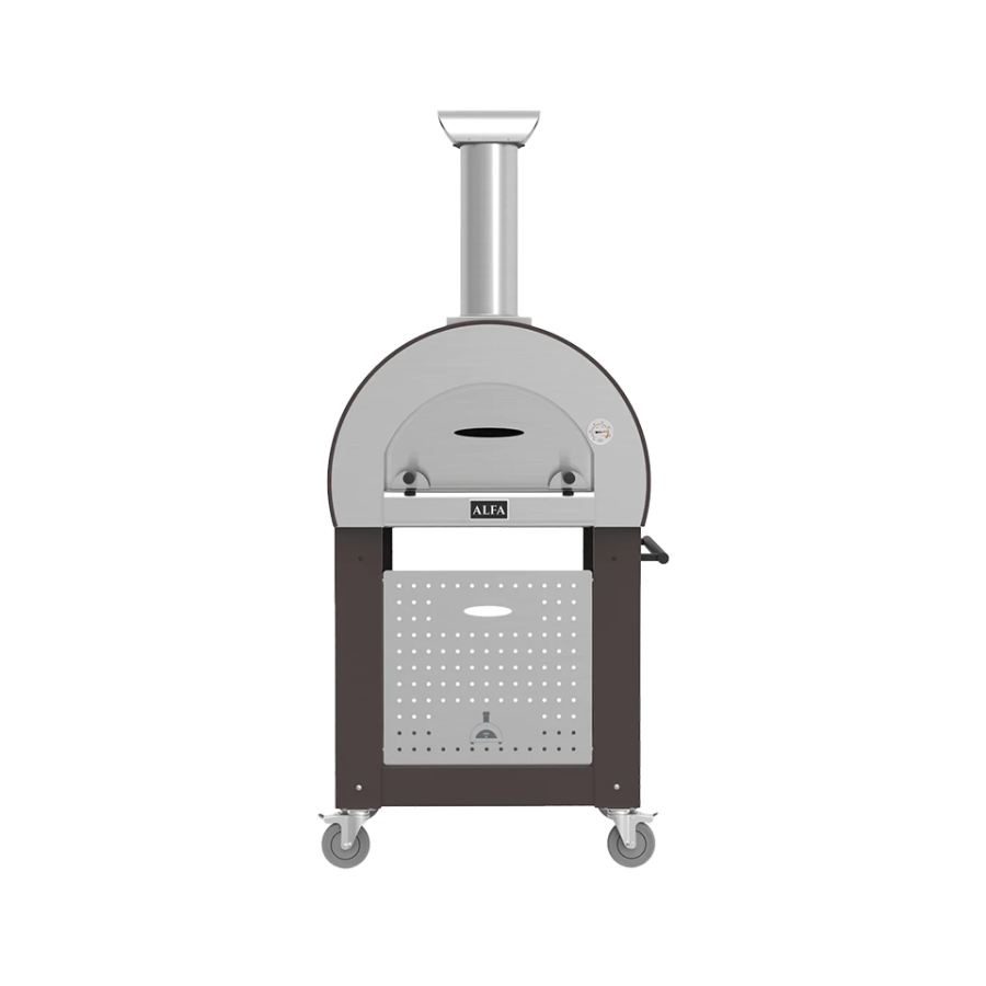1 pizza fırını için uygun, tekerlekleri ile pratik konum değiştirme ve odun stok yerine sahip.