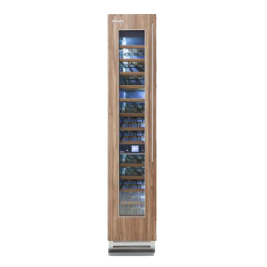 2 farklı ısı ayarına ve üst kısmı şaraplık, alt kısmı tek çekmece dondurucu özelliğine sahip şarap dolabı.