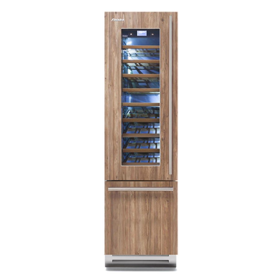 2 farklı ısı ayarına ve üst kısmı şaraplık, alt kısmı çift çekmece dondurucu özelliğine sahip şarap dolabı.