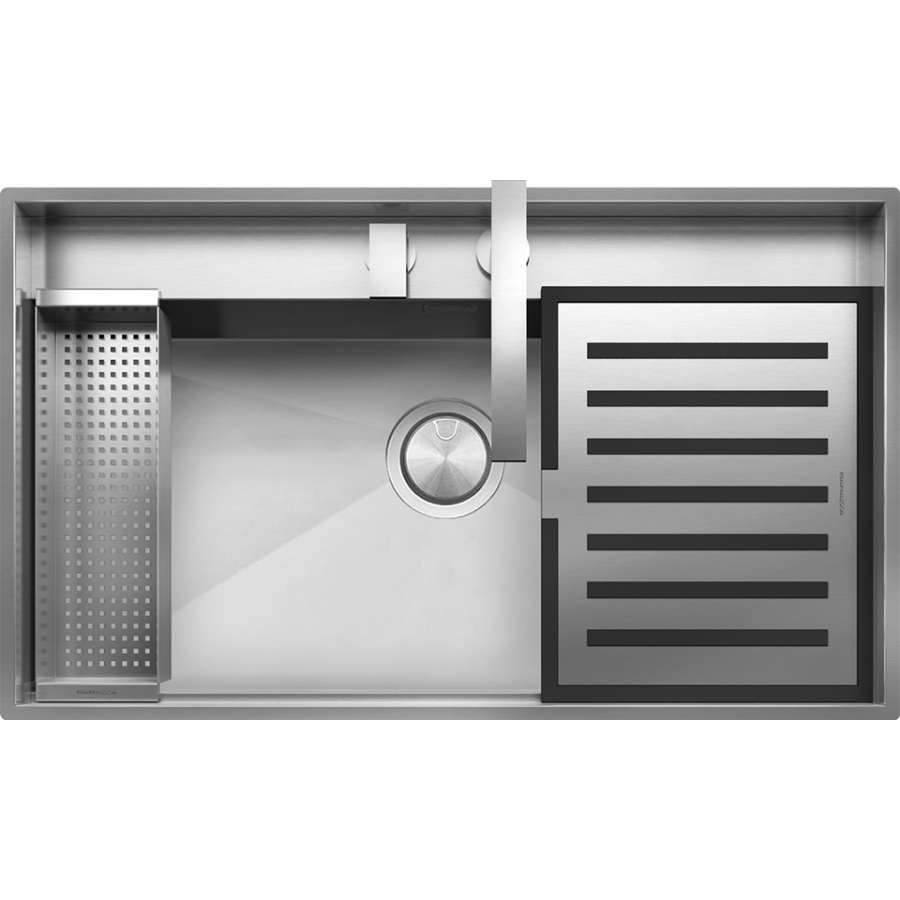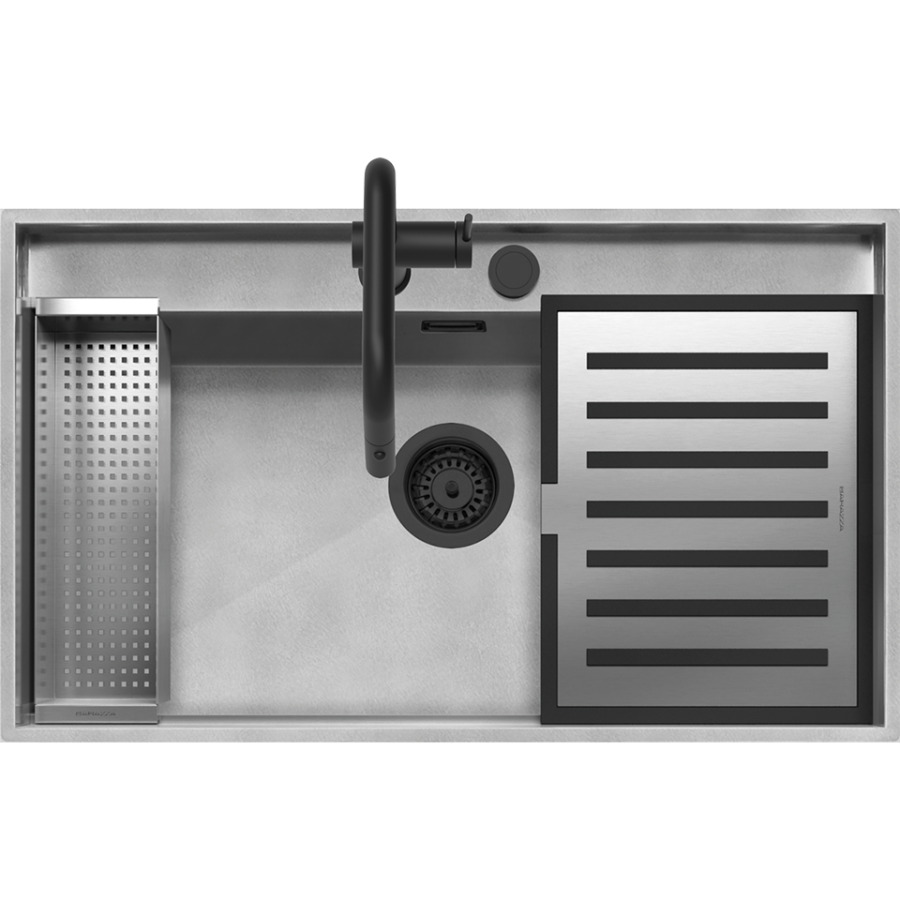 AISI 304 çeliğinden üretilmiş, ankastre 90 cm, tezgahaltı 100 cm paslanmaz çelik ankastre eviye kiti ve eviye aksesuarları.