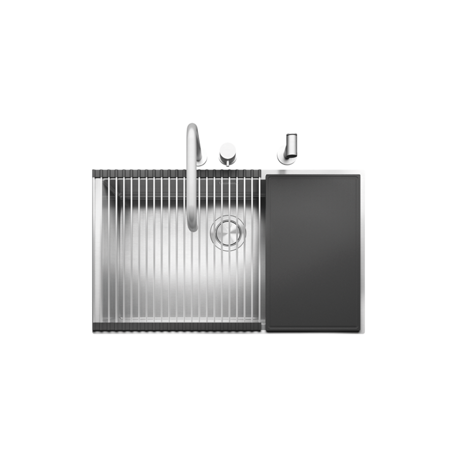 Açıklama Siyah B_Granit 90 cm ankastre eviye, eviye aksesuarları ve batarya Ölçüsü 79.6 x 36.5×20 cm Malzeme Siyah B_Granit Donanım