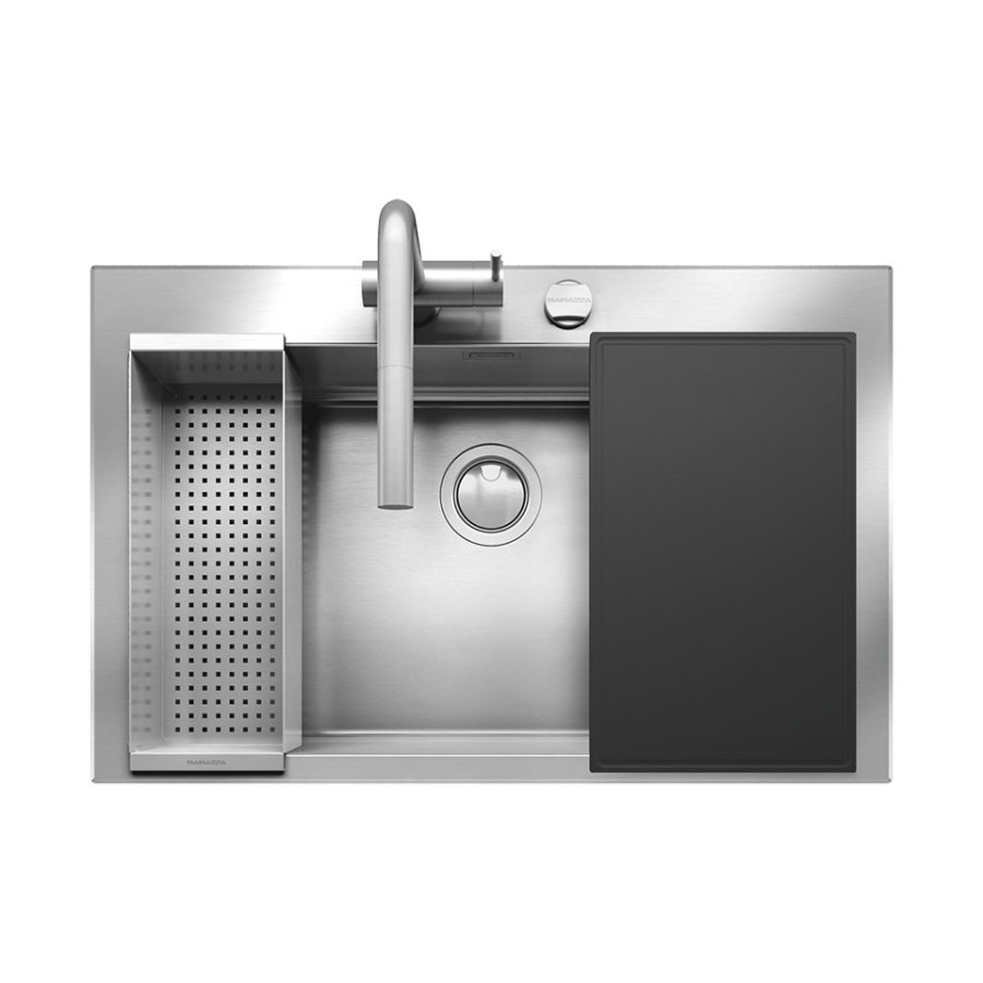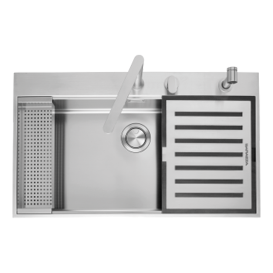 AISI 304 çeliğinden üretilmiş, 90 cm paslanmaz çelik eviye kiti ve aksesuarları.