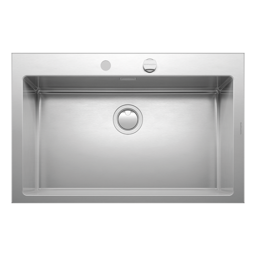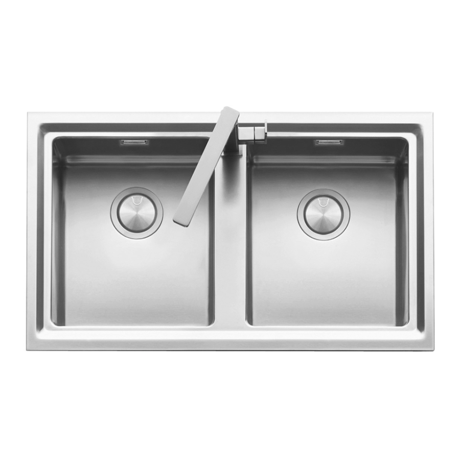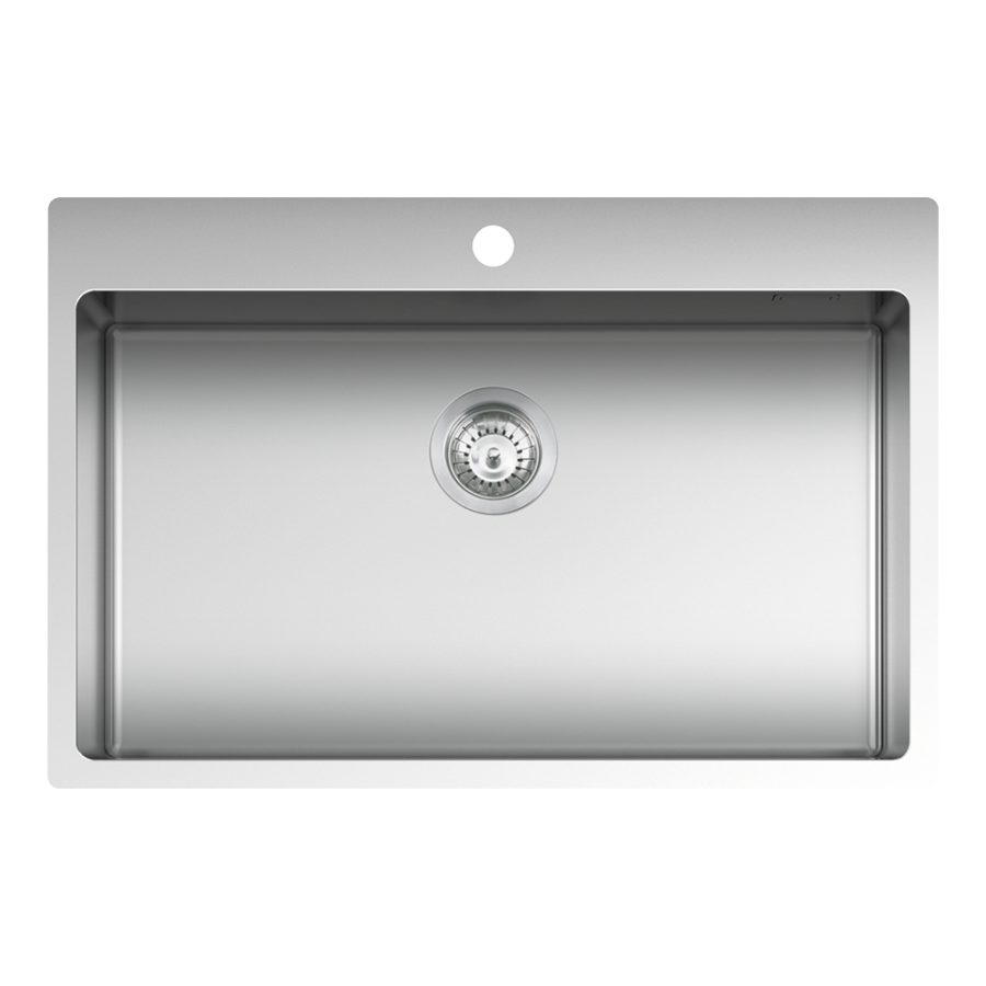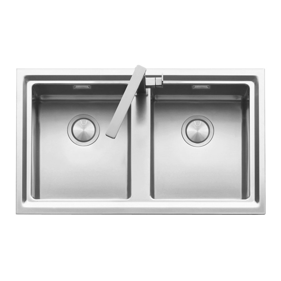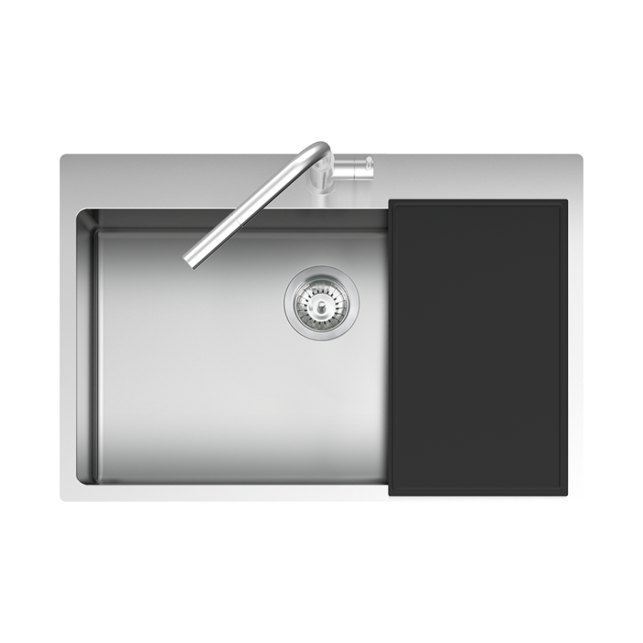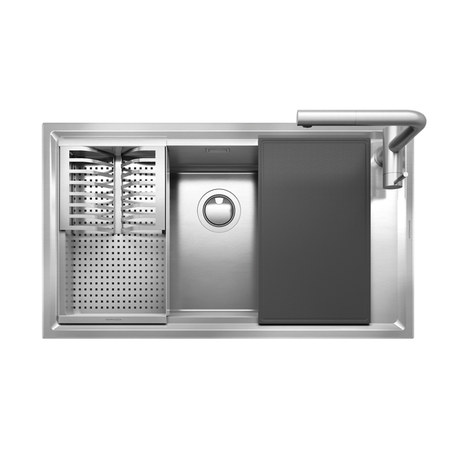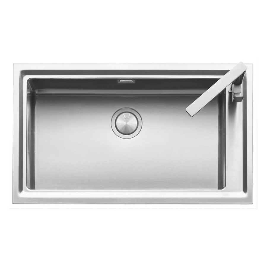 AISI 304 çeliğinden üretilmiş, 86 cm paslanmaz çelik eviye ve batarya.