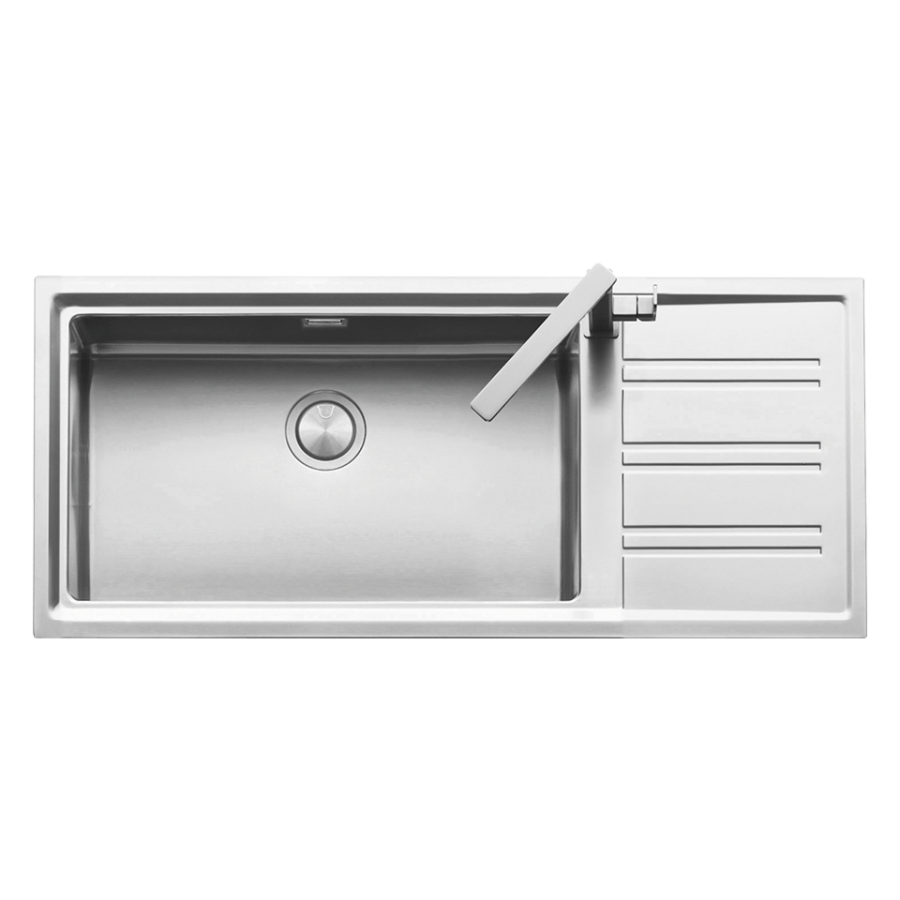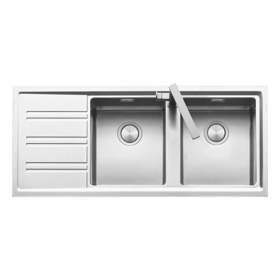 AISI 304 çeliğinden üretilmiş, 116 cm paslanmaz çelik eviye ve batarya.